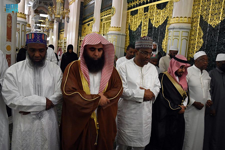 MEDINE : LE PREMIER MINISTRE MOHAMED BEAVOGUI EFFECTUE DES PRIÈRES À LA SAINTE MOSQUÉE DU PROPHÈTE MOHAMED (PSL)