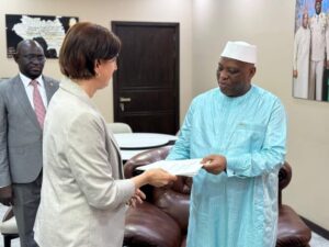 Conakry, Guinée– Ce lundi 15 juillet 2024, Madame Irene Biontino, nouvelle Ambassadrice de la République fédérale d’Allemagne en Guinée, a officiellement remis les copies figurées de ses lettres de créance au Ministre des Affaires étrangères, Dr Morissanda Kouyaté. Cette cérémonie marque un moment important dans les relations diplomatiques entre les deux nations, soulignant la volonté de renforcer les liens d’amitié et de coopération.
