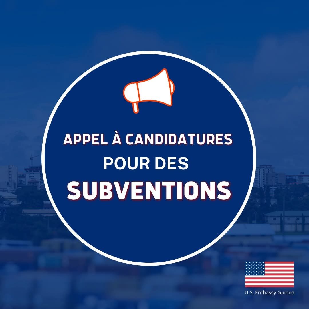 L’Ambassade des États-Unis à Conakry lance un appel à candidatures dans le cadre de son Programme de Petites Subventions. Cet appel s’adresse aux organisations désireuses de proposer un ou plusieurs projets destinés à renforcer les liens entre les États-Unis et la Guinée, que ce soit à travers l’éducation, la culture, l’entrepreneuriat, ou tout autre domaine d’impact social.