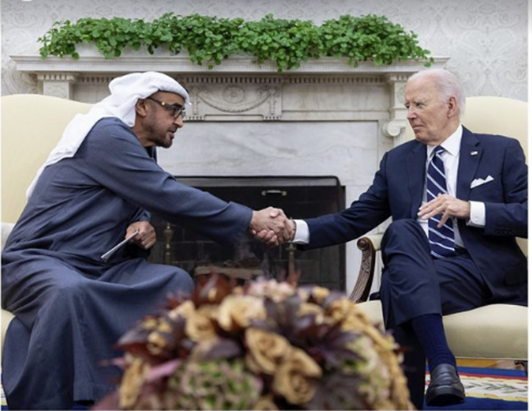 WASHINGTON, D.C., États-Unis, 25 septembre 2024/ — Son Altesse le Cheikh Mohamed bin Zayed Al Nahyan, Président des Émirats arabes unis, et le Président Joseph R. Biden Jr. se sont rencontrés aujourd’hui à la Maison-Blanche lors de la visite officielle de Son Altesse aux États-Unis. Il s’agit de la première visite d’un Président des Émirats arabes unis à Washington et marque la quatrième rencontre bilatérale entre les deux dirigeants sous l’administration Biden-Harris. Les leaders ont réaffirmé le partenariat stratégique et de défense durable entre les États-Unis et les Émirats arabes unis, ont renforcé les domaines de coopération en technologies avancées et investissements, et ont discuté des questions mondiales et régionales. Ils se sont engagés à poursuivre de nouvelles opportunités pour renforcer leur partenariat économique et de défense, promouvoir la paix et la stabilité au Moyen-Orient et dans la région élargie, et offrir un leadership mondial sur des questions d’importance commune.