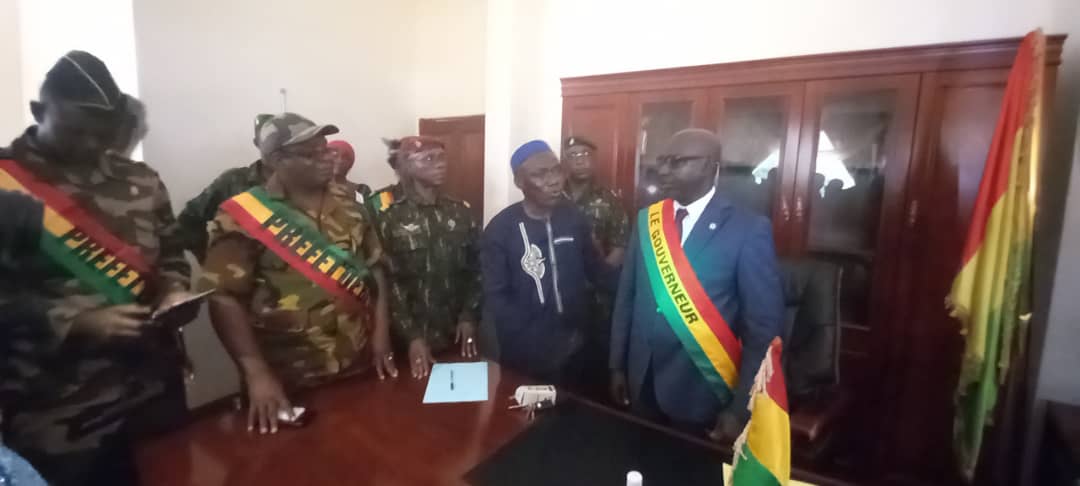 la cérémonie de passation de service a eu lieu ce matin entre les gouverneurs sortant et entrant, respectivement, Colonel Sékouba Trésor Camara et Contrôleur de la Police, Mamadou Camara.
