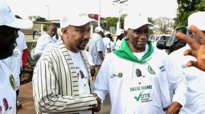 Sur des T-shirts et bandéroles, on lisait ceci: » Génération pour la Modernité et le Développement (GMD-Bâtir Ensemble); votons tous Mamadi Doumbouya; pour une Guinée unie, forte et prospère; Candidat Mamadi Doumbouya etc… »