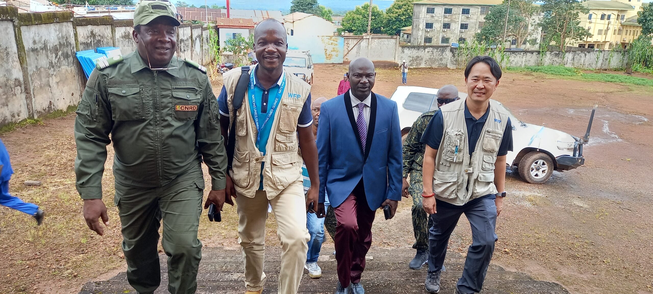 Avant de rallier la sous-préfecture de Bintimodia où la population ets fortement impactée par le Projet, M. Joon Lim a visité le Magasin du PAM en compagnie du Gouverneur et préfet de Boké.