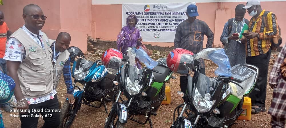 Dans le cadre de la mise en œuvre de son projet intitulé << Accès aux soins de santé des vulnérables en Guinée>>, l’ONG Fraternité Médicale Guinée (FMG), à travers le Gouvernement Belge, a procédé ce vendredi 28 juillet 2023, à la remise de trois (03) motos de marque YAMAHA, aux Centres de santé de Kolaboui (Boké), Tabossy (Fria) et Koumbia (Gaoual).