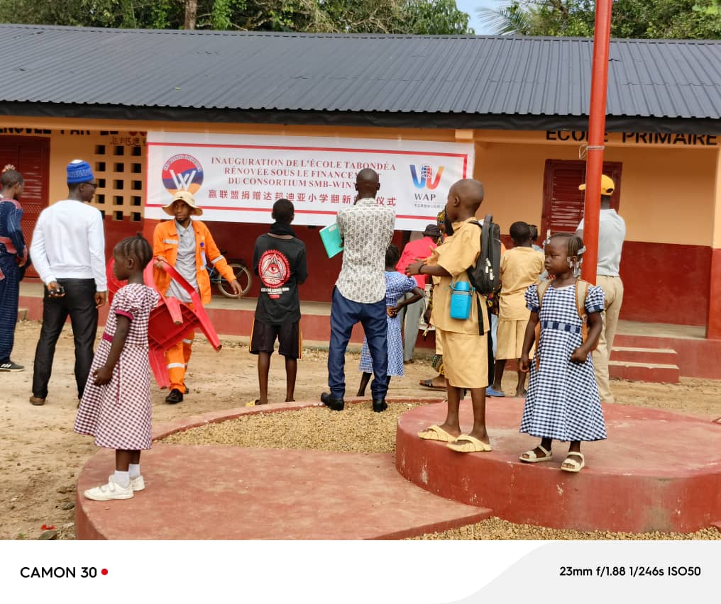 Entièrement rénovée sur fonds propre du Consortium SMB-Winning, l’école primaire créée en 1969, dans le district de Tabondéya dans la sous-préfecture de Kolaboui (Boké) a été officiellement remise ce jeudi, 17 octobre 2024 à la communauté bénéficiaire.