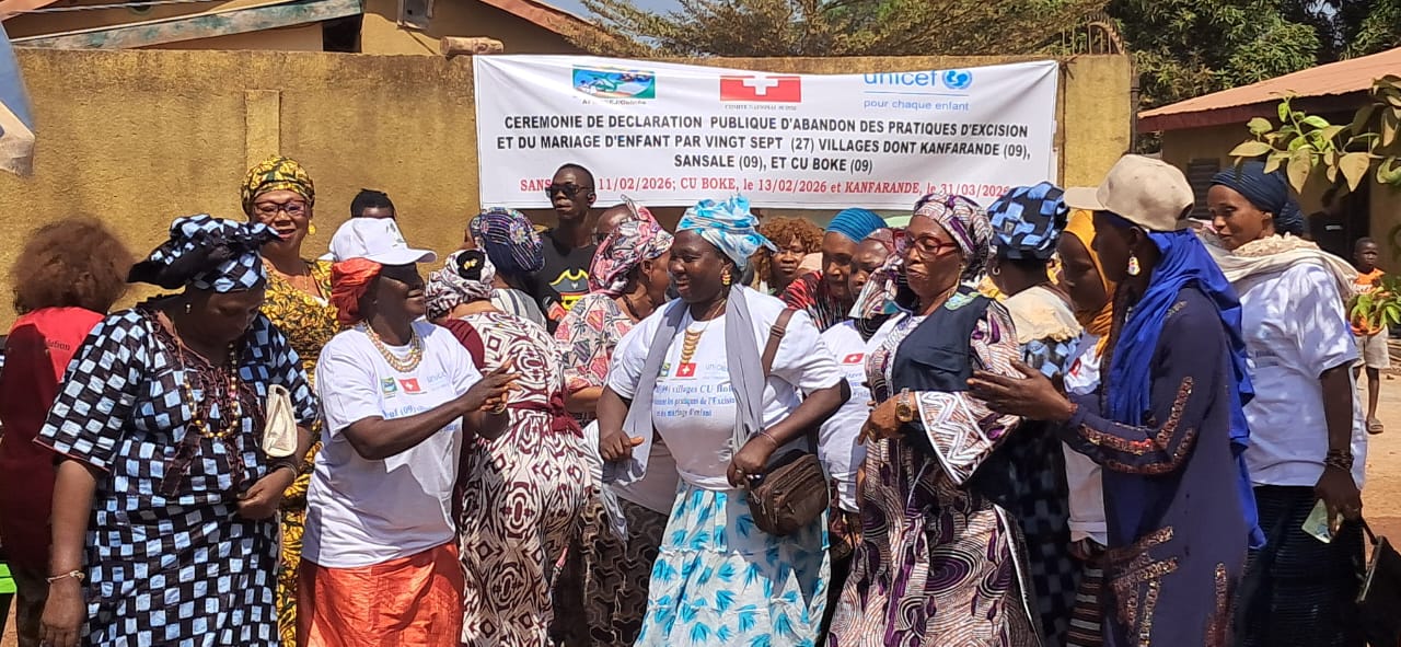 Dans le cadre de la mise en œuvre du projet « Contribuer à l’abandon des pratiques de Mutilations Génitales Féminines (MGF) et mariages d’enfants », l’ONG APRODEJ, sous financement technique et financier de l’UNICEF, a organisé, du Jeudi, 5 au Samedi,14 Février 2026, des cérémonies communautaires afin de célébrer les déclarations publiques d’abandon des MGF et du mariage d’enfants dans onze (11) communes urbaines et rurales des cinq (5) préfectures de la région de Boké.