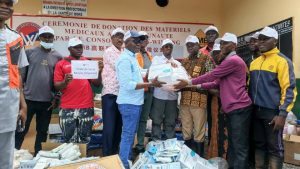 Le don est essentiellement composé de masques, de gants, coton-tige, gaz, bande en gaz, ruban adhésif médical, d’alcool 75%, de povidone iodée, Moustiquaires imprégnées, peroxyde d’hydrogène, tensiomètre, pansement adhésif, pansement à usage unique, thermomètre à mercure et brancards.