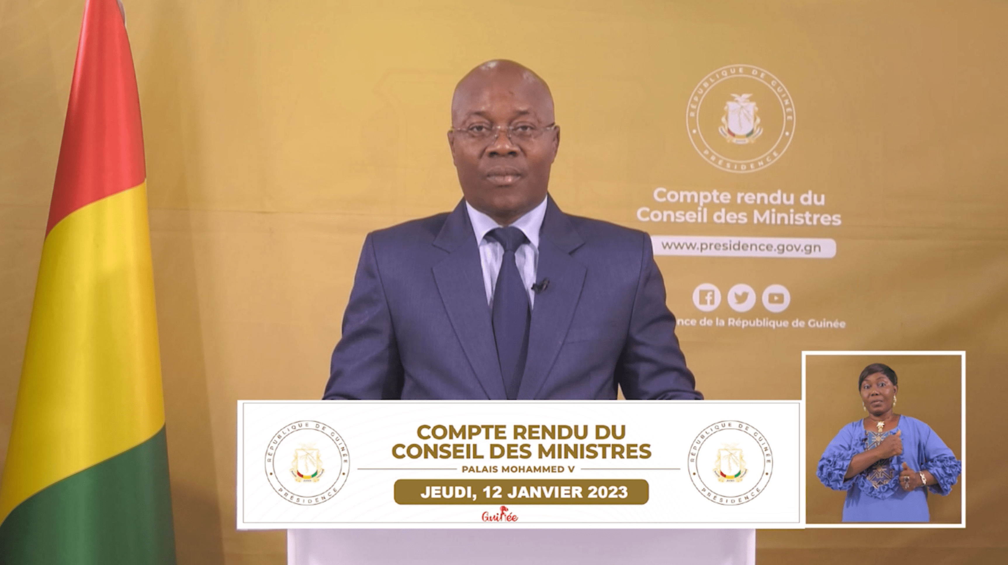 La Session Ordinaire du Conseil des Ministres s’est tenue ce jeudi 12 Janvier 2023 de 10H à 12H, sous la Haute Autorité de son Excellence Monsieur le Président du CNRD, Président de la Transition, Chef de l’Etat, Chef Suprême des Armées, le Colonel Mamadi DOUMBOUYA.