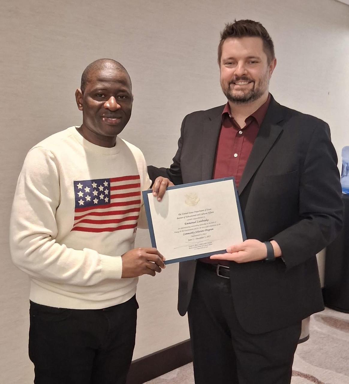 Au cours de son séjour aux États-Unis, Abdoulaye Cissé a pris part à des activités de bénévolat auprès d’organisations américaines, tout en effectuant un stage académique et pratique à la Carter School for Peace and Conflict Resolution de l’Université George Mason. Cette immersion lui a permis de consolider ses compétences en consolidation de la paix, en analyse des conflits et en engagement communautaire, des domaines essentiels pour répondre aux défis sociaux contemporains.