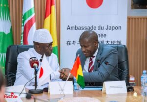 Le Ministre du Plan et de la Coopération Internationale, M. Ismaël NABE a remercié SEM l’Ambassadeur du Japon pour ce Don du Projet d’appui à la transition et salué le pragmatisme de la Coopération avec le Japon : «Nous sommes rassurés pour tout ce que le Japon apporte à la Guinée notamment dans la réalisation des infrastructures notamment les ponts et la formation des cadres guinéens au Japon. Nous sommes vraiment rassurés et satisfait pour tout ce que le Japon fait pour la République de Guinée.. Je peux rassurer la communauté Internationale que ça soit le Système des Nations Unies, notamment le PNUD ou le Japon que le chef de l’Etat apprécie hautement vos contributions pour soutenir la Guinée, donc c’est vous dire merci».