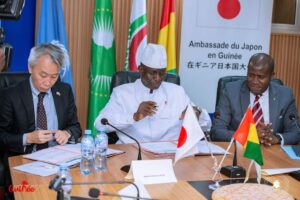 Le Gouvernement Guinéen, le Japon et le Programme des Nations Unies pour le développement (PNUD) en Guinée ont procédé le 15 mai 2024, à la signature d’une Convention de financement et au lancement du Projet d’aide à la transition pour le rétablissement de l’ordre constitutionnel en Guinée, dont le budget s’élève à 1 828 181 USD soit 274 291 320 yens, en soutien au processus électoral afin de contribuer au retour à l’ordre constitutionnel en Guinée en créant un environnement propice à la tenue d’élections démocratiques.