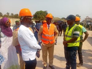 Poursuivant sa visite, le Gouverneur et sa délégation se sont rendus sur le site du futur bloc administratif actuellement en chantier. Cette infrastructure, une fois achevée, devrait contribuer à améliorer les conditions de travail des services déconcentrés de l’État et renforcer la qualité de l’administration publique dans la préfecture.