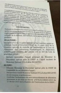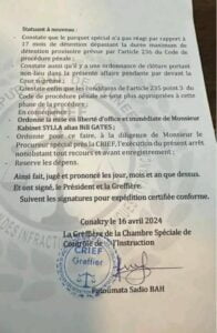 En conséquence, la Cour a ordonné la mise en liberté immédiate de Kabinet Sylla, Bill GATES, sans être empêchée par un recours, et a chargé le Procureur spécial près la CRIEF d’exécuter cette décision.
