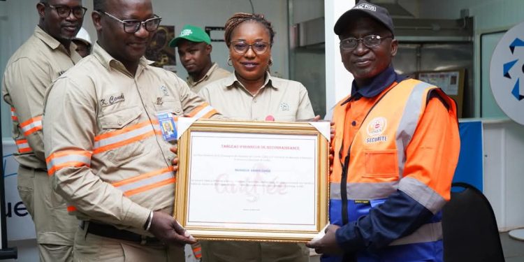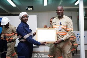 L’événement s’est conclu par la remise de satisfécits à trois figures symboliques : le Directeur Général, le Secrétaire Général du Syndicat CBG Kamsar, et l’Inspecteur Régional du Travail. Ces distinctions incarnent l’esprit de collaboration, de dialogue social et de reconnaissance mutuelle qui anime la CBG.