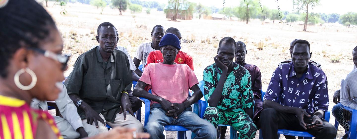 Un officier de la MINUSS discute de la rareté de l’eau avec les agriculteurs afin d’aider à prévenir les conflits entre eux et la communauté agricole à Kworijik, au Sud-Soudan.