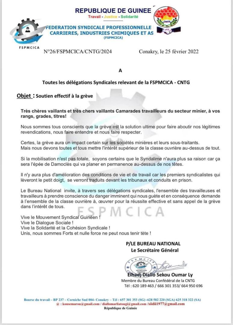 Grève générale illimitée : la Fédération Syndicale Professionnelle, carrières, Industries Chimiques et AS (FSPMCICA-CNTG) soutient la grève