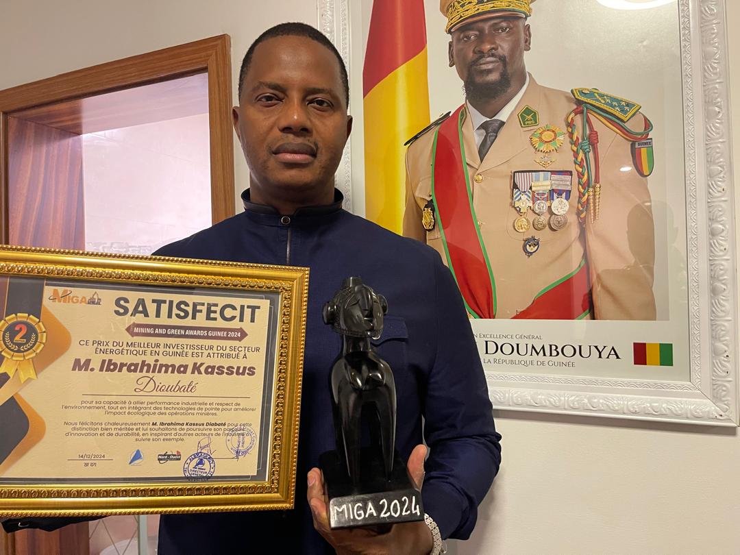 Ibrahima Kassus Dioubaté, fondateur et dirigeant de la société K-Energie, a été désigné Meilleur investisseur guinéen dans le secteur de l’énergie pour la période de 2014 à 2024. Cette distinction, décernée lors des prestigieux Mining and Green Awards, récompense une décennie d’efforts et d’innovations visant à renforcer l’accès à l’énergie en Guinée et à contribuer au développement économique et social du pays.