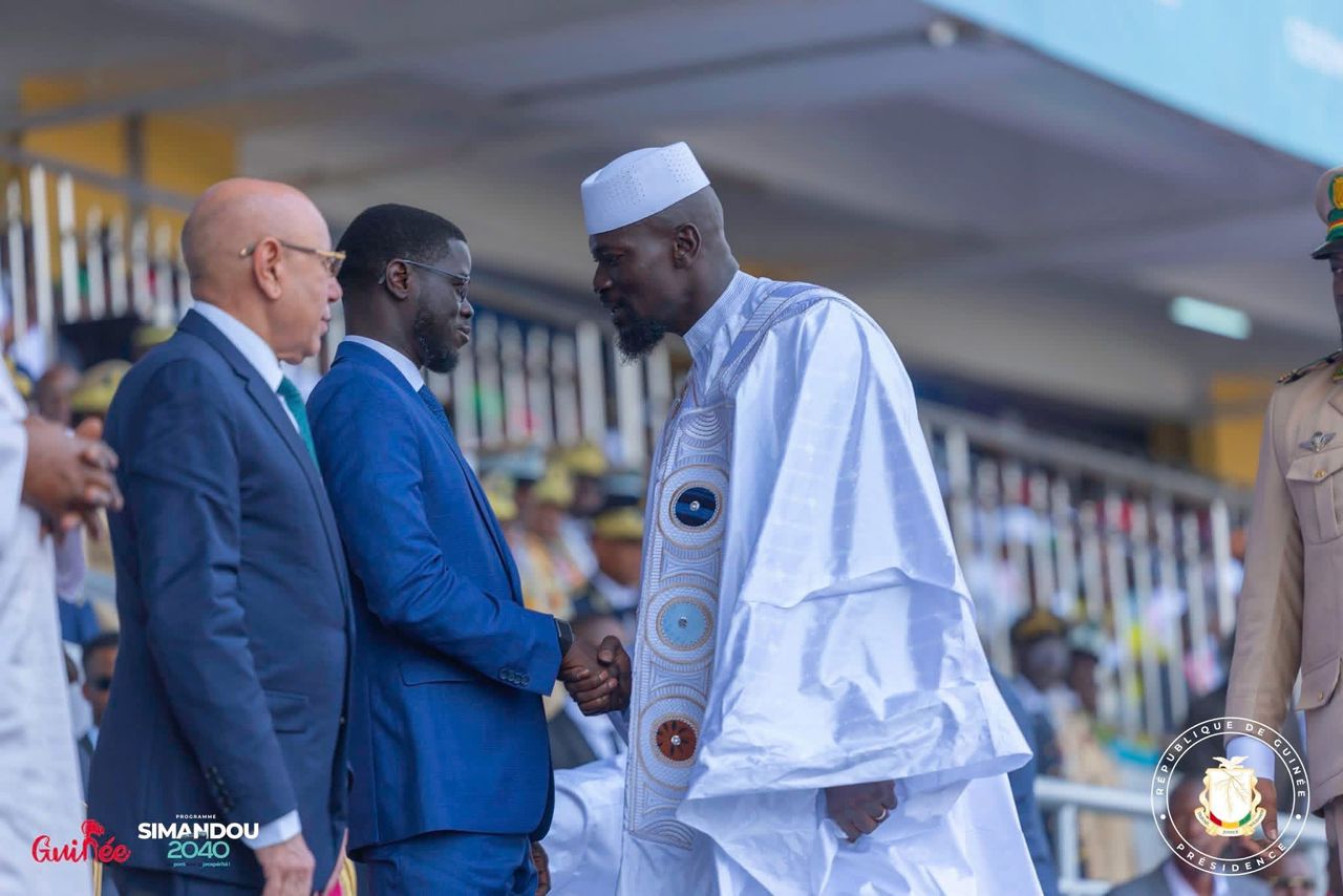 Au stade de Nongo, devant une foule nombreuse et enthousiaste, le Président sénégalais assiste à cette cérémonie solennelle qui consacre officiellement l’entrée en fonction du Président Mamadi Doumbouya. Cet acte symbolique est perçu comme un message fort de soutien institutionnel et diplomatique au processus engagé par les autorités guinéennes.