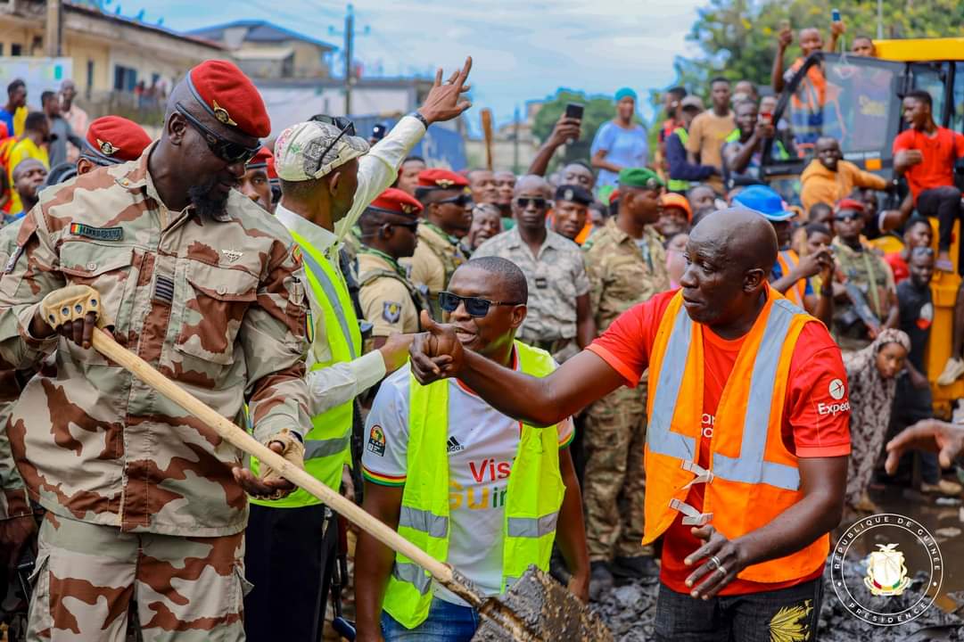Profitant de cette journée ensoleillée, et perpétuant ainsi un acte patriotique, e Colonel Mamadi DOUMBOUYA a eu une matinée chargée en se rendant dans la commune de Matoto précisément au quartier Yimbaya-terrain pour piloter en personne les opérations d’assainissement, puis à Mafanco dans Matam sous les vivats des populations enthousiastes.