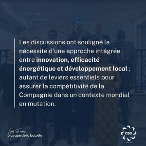 Fidèle à son rôle d’entreprise citoyenne, la Compagnie des Bauxites de Guinée entend poursuivre sa mission avec détermination : bâtir une croissance inclusive et durable, fondée sur un dialogue permanent avec ses partenaires institutionnels, communautaires et industriels.