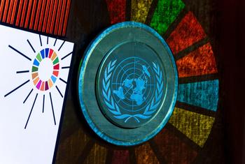 Une projection du logo des ODD dans la salle de l’Assemblée générale (photo d’archives).