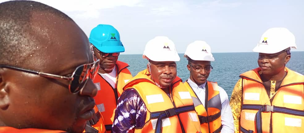 Lansana Donzo, directeur général adjoint du bureau de contrôle de qualité et de quantité des produits miniers à l’exploitation du département des mines et de la géologie a clairement expliqué le rôle de son ministère dans ce projet. « Aujourd’hui, nous sommes très heureux de recevoir les équipements d’Elite Mining. À savoir une griffe flottante et 2 barges. Ces équipements vont servir à charger les captages stationnés en haute mer pour exporter la boxing. Il faut retenir que nous, notre bureau est chargé essentiellement de suivre le mouvement de ses barges et de ses griffes flottantes par rapport au chargement du capsage… »