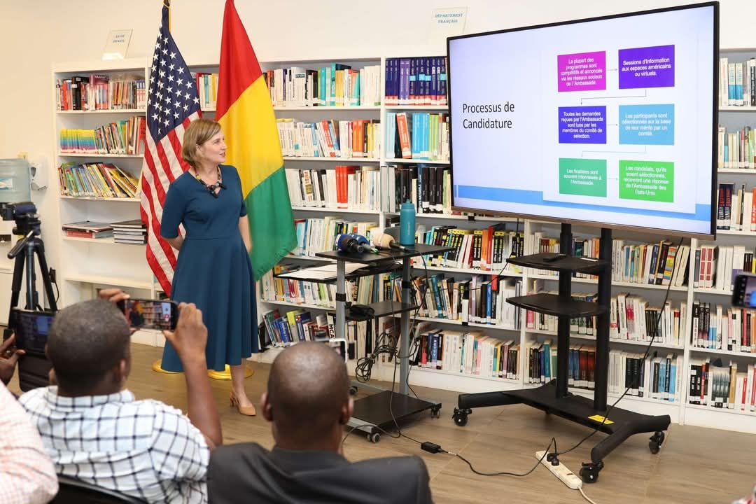Conakry – Le Centre Américain de l’ambassade des États-Unis a récemment accueilli une présentation inspirante animée par Sara Kauffman, responsable adjointe des affaires publiques. Elle y a exposé les différentes opportunités offertes par les programmes d’échange du gouvernement américain à destination des jeunes Guinéens.