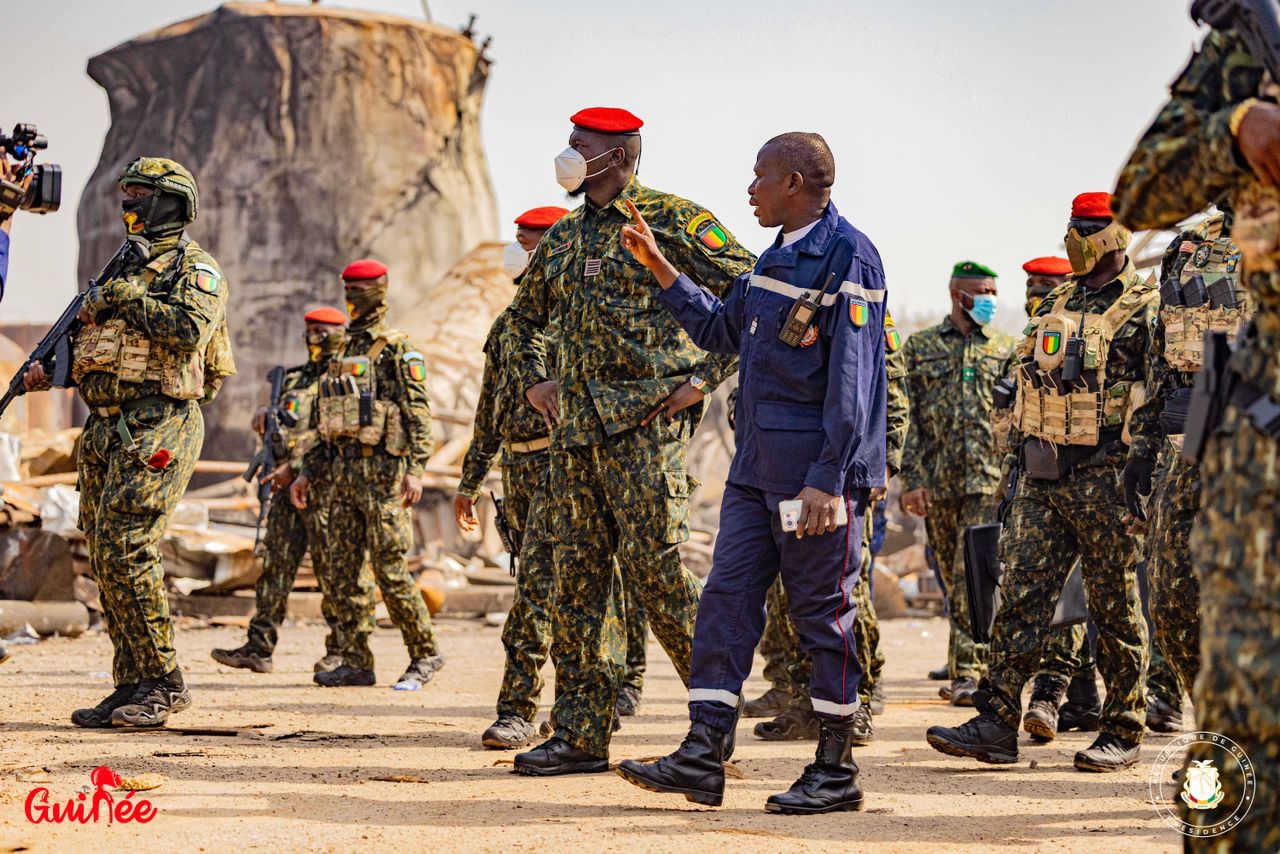 Sur place, en compagnie des pompiers, tant du public que du privé et du personnel de la Société Guinéenne de Pétrole (SGP), le Chef de l’État a pris la mesure de la réalité du terrain. Il leur a réaffirmé son soutien et la reconnaissance totale du peuple de Guinée pour les efforts louables qu’ils ont fournis dès les premières heures de l’incendie.