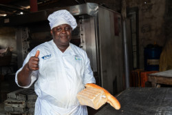 ABIDJAN, Côte d’Ivoire, 28 septembre 2024/ — Dans la boulangerie d’Okoun-Sèmè, le pétrin tourne à plein régime. Depuis le début de l’année, les commandes de pain, croissants et pains au chocolat sont honorées dans les délais. À la baguette, devant son four, Pierre Gbenou Tito Dossou, le jovial propriétaire de la boulangerie, est aujourd’hui un homme heureux.