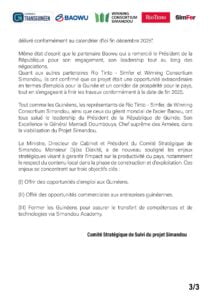 Sous la haute autorité du président de la république, le général Mamadi Doumbouya, l’Etat guinéen et ses partenaires industriels ont mutualisé le 2 avril 2024 leurs efforts pour les dernières phases de développement du Projet Simandou, le plus grand projet minier au monde. Pour le ministre des Mines et de la Géologie, Bouna Sylla ‘’on ne peut qu’être fier d’être guinéen et aussi du travail accompli par le Président de la République, le Général Mamadi Doumbouya…’’.