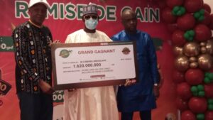 La LONAGUI (loterie nationale de Guinée) a procédé ce jeudi 27 juin 2024 à Conakry, à la remise des gains aux trois heureux gagnants. Rappelons que le premier parieur a raflé une somme de d’un milliard six cent vingt millions (1 620 000 000 GNF), le second s’est offert quatre cent millions (400 000 000 GNF) et le troisième a empoché trois cent quatre-vingt-neuf millions huit cents mille (389 800 000 GNF).
