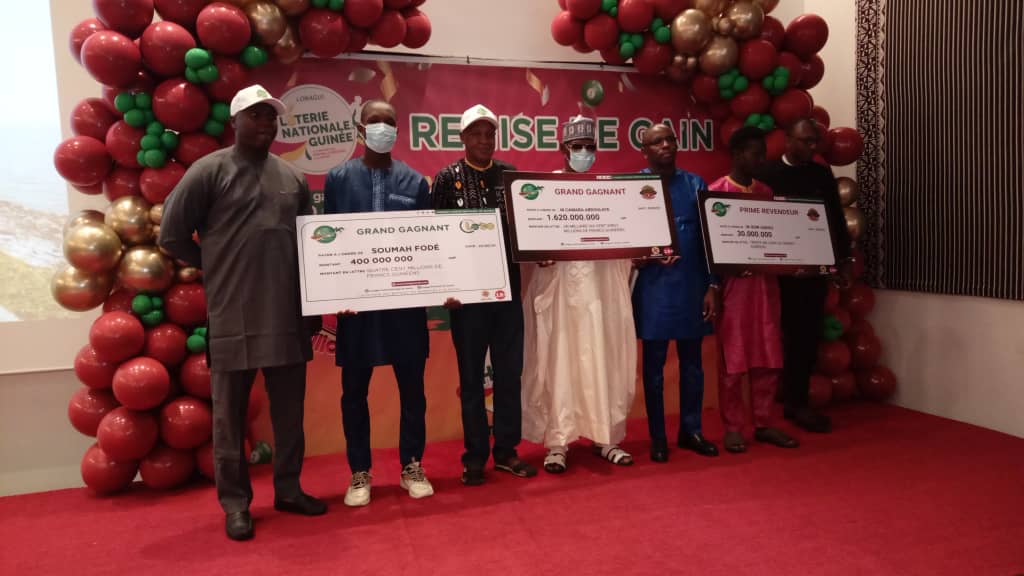 La LONAGUI (loterie nationale de Guinée) a procédé ce jeudi 27 juin 2024 à Conakry, à la remise des gains aux trois heureux gagnants. Rappelons que le premier parieur a raflé une somme de d’un milliard six cent vingt millions (1 620 000 000 GNF), le second s’est offert quatre cent millions (400 000 000 GNF) et le troisième a empoché trois cent quatre-vingt-neuf millions huit cents mille (389 800 000 GNF).