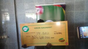« Le Japot 4/59 a produit une trentaine de gagnants millionnaires. Par semaine, nous distribuons plus d’un milliard de gains à partager sur notre réseau de distribution ou de vente. Nous lançons un message aux Guinéens : la LONAGUI reste toujours la meilleure des loteries. Il est à noter que ce parieur n’a misé que 4 000 francs pour gagner 304 400 000 FG, ce qui est possible tous les jours sauf le lundi et le jeudi pour le jeu quotidien. Pour le jeu du milliardaire, vous pouvez jouer ces jours-là avec 4 000 FG. Une fois le gain annoncé sur la plateforme, le chef de la promotion contacte l’agence qui encadre le gagnant pour lui montrer toutes les procédures à suivre. »