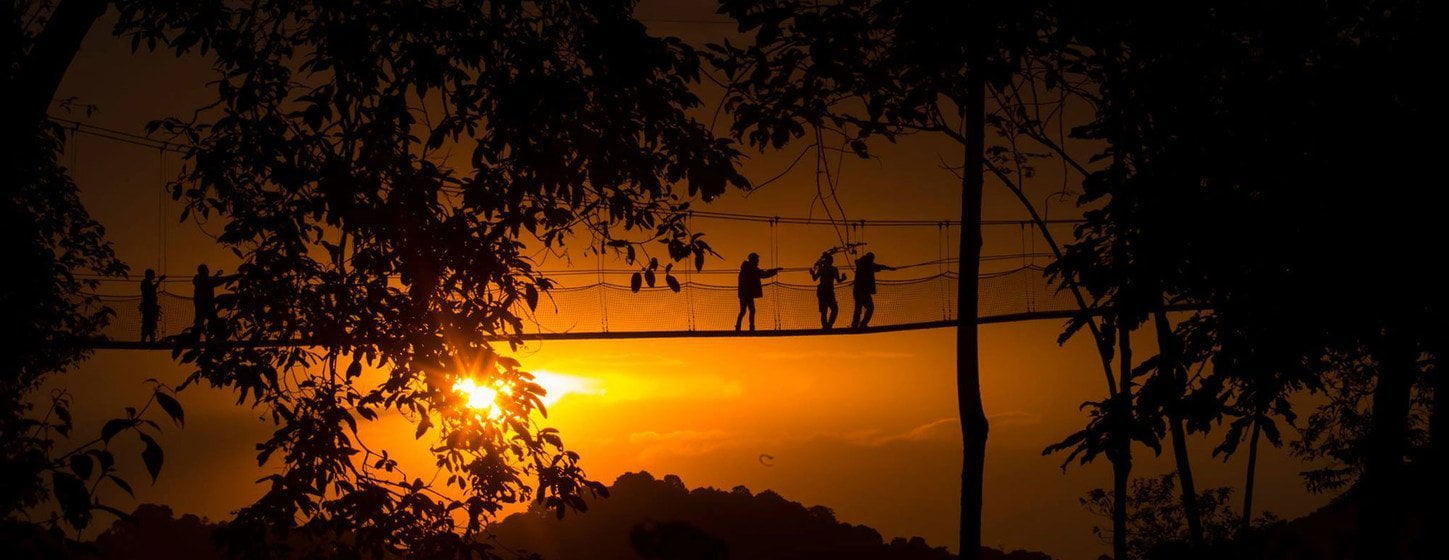Coucher du soleil dans le parc national de Nyungwe au Rwanda, inscrit au Patrimoine mondial de l’UNESCO.