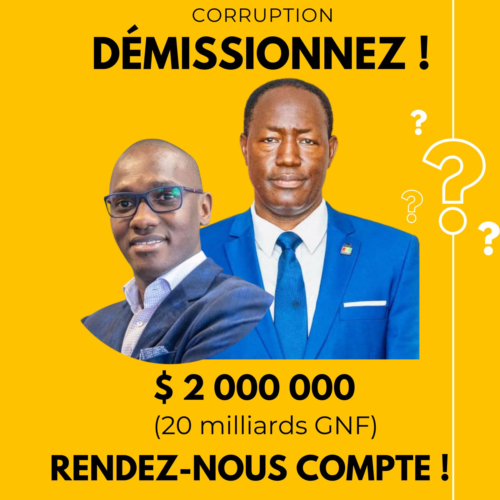 Au regard des faits, le 15 novembre 2023 à travers le site d’information générale https://www.guinee7.com a publié un courrier administratif du Ministère des Mines et de la Géologie N°/réf: 0772/MMG/CAB/2023 en date du 11 mai 2023 ayant pour objet « courrier réponse aux avantages de l’exploitation d’une carrière de schiste ». Au fond du courrier, l’ancien ministre des Mines et de la Géologie, M. Moussa Magassouba et son Conseiller Économique et Fiscal, M. Yakouba Kourouma ont sollicité un pots-de-vin d’une valeur de deux (2) millions de dollars USD soit près de vingt (20) milliards de francs guinéens au Directeur Général de l’entreprise Ciments d’Afrique (CIMAF), M. Ayoub Arrad en violation du code minier et de la L/2017/N°0041/AN portant prévention, détection et répression de la corruption et les infractions assimilées.