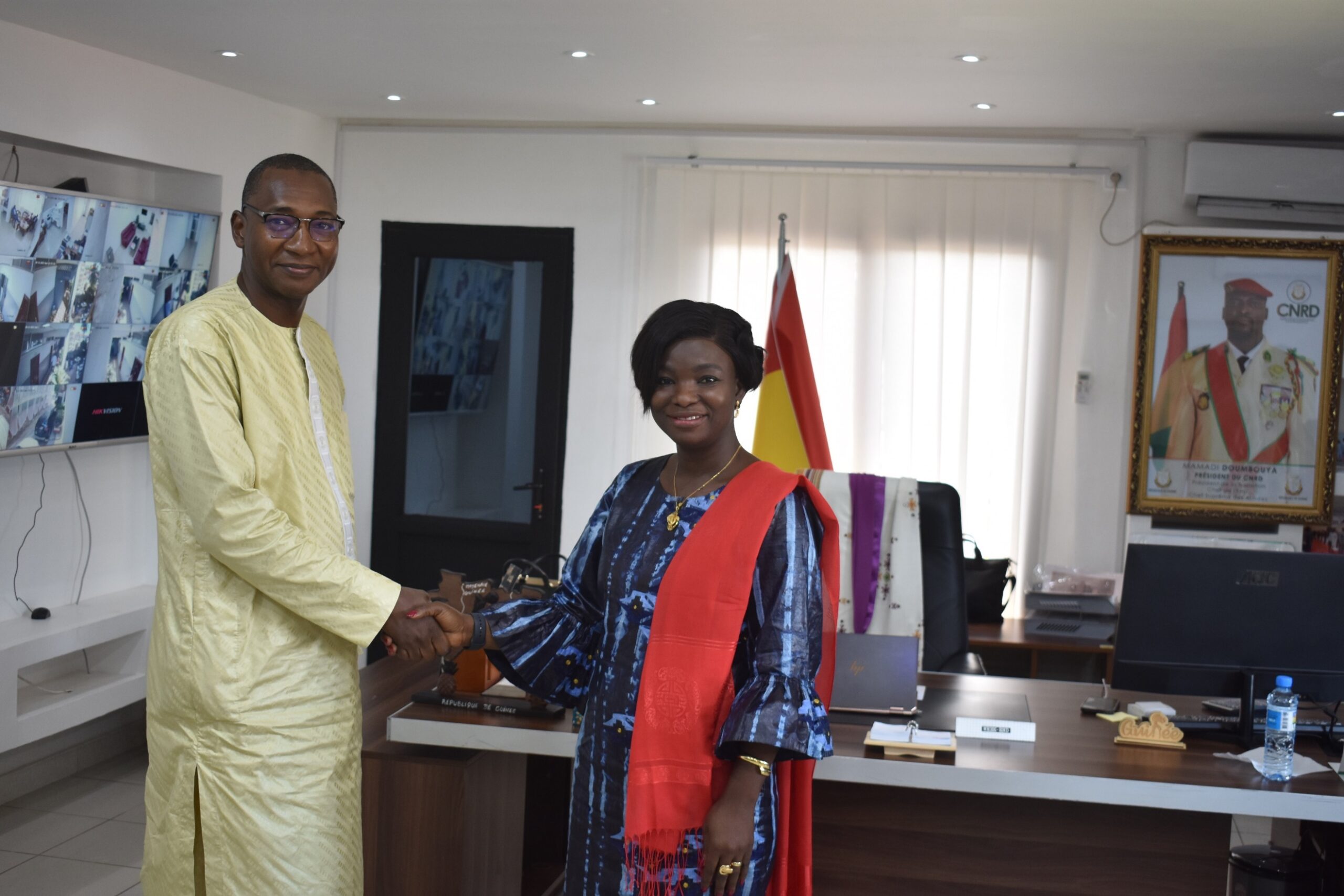 Le Représentant résident adjoint du PNUD en Guinée, M. Alassane Ba, accompagné du Chargé du Programme Environnement et développement durable, M. Mamadou Ciré Camara et du Chargé de communications et de la culture, M. Mamadou Saliou Diallo, a rendu dans l’après-midi de ce Mercredi 11 Octobre 2023, une visite de courtoisie et de prise de contact à Madame la Ministre du Commerce, de l’Industrie et des Petites et Moyennes Entreprises, Mme Louopou Lamah. Pour la circonstance la ministre était entourée de son Cabinet (Chef de Cabinet et le Conseiller Principal) ainsi que la Secrétaire Générale de la Chambre de Commerce, d’Industrie et d’Artisanat, de la Directrice générale adjointe de l’Agence de Promotion des Investissements Privés (APIP) et la Directrice générale adjointe de l’Agence Guinéenne de Promotion des Exportations (AGUIPEX).