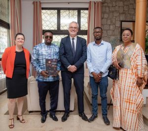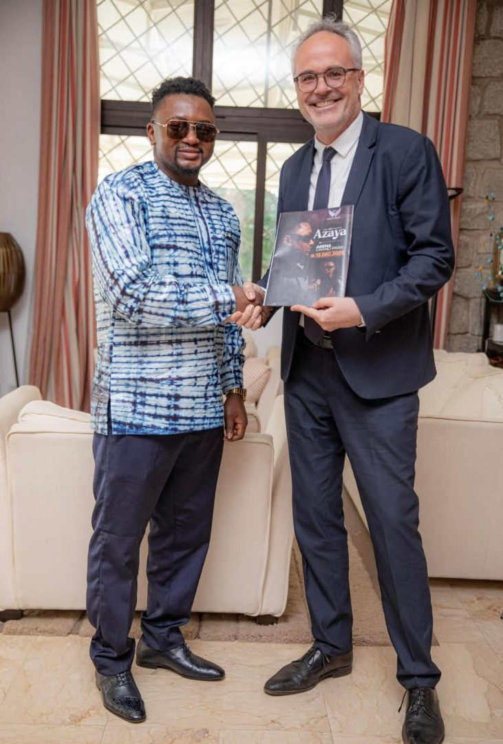Conakry – Le chanteur guinéen Azaya, figure emblématique de la musique africaine, a reçu les félicitations du diplomate français Luc Briard, ambassadeur de France en Guinée, lors d’une rencontre officielle. Accompagné de Marion Bourgain, sous-directrice pour l’Afrique occidentale au Ministère français des Affaires étrangères, l’ambassadeur a tenu à saluer le parcours remarquable de l’artiste et son influence croissante sur la scène musicale internationale.