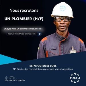 Dans le cadre de sa vision de croissance durable et inclusive, la Compagnie des Bauxites de Guinée (CBG) engage une série de recrutements stratégiques visant à renforcer son capital humain, notamment dans les domaines de la menuiserie et de la plomberie. Cette initiative traduit la volonté de l’entreprise d’investir dans les compétences locales et de promouvoir les métiers techniques essentiels à l’entretien et à l’amélioration de ses infrastructures.