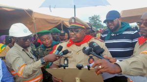 En coulant le cordon inaugural du Marché moderne de Sangarédi, le préfet de Boké a remercié la Direction générale de la CBG pour cette initiative porteuse d’espoir pour les habitants de Sangarédi.