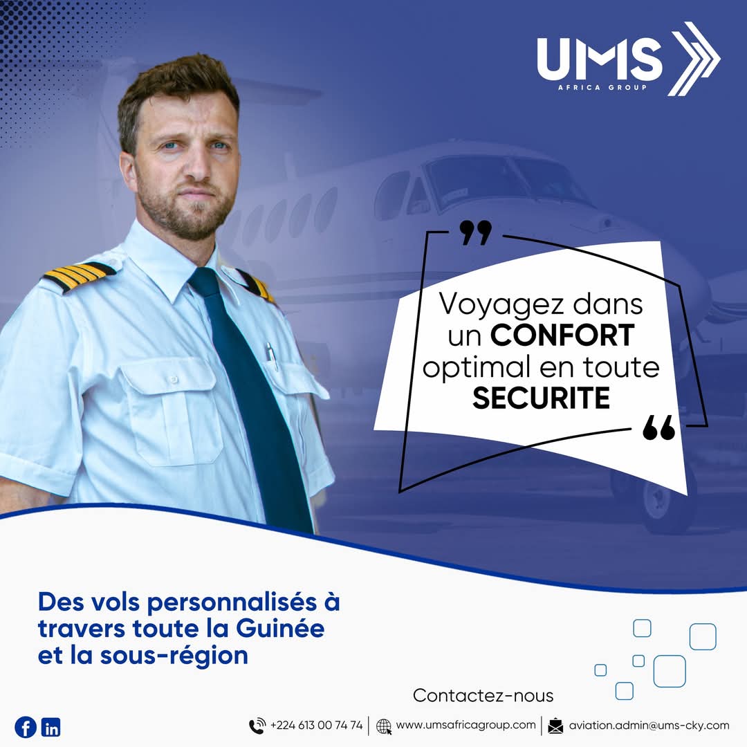 Conakry, le 05 février 2025 – Pour vos déplacements en Guinée et dans toute la sous-région, le Groupe UMS, à travers sa marque UAS, vous propose des vols privés et personnalisés alliant confort, sécurité et flexibilité.