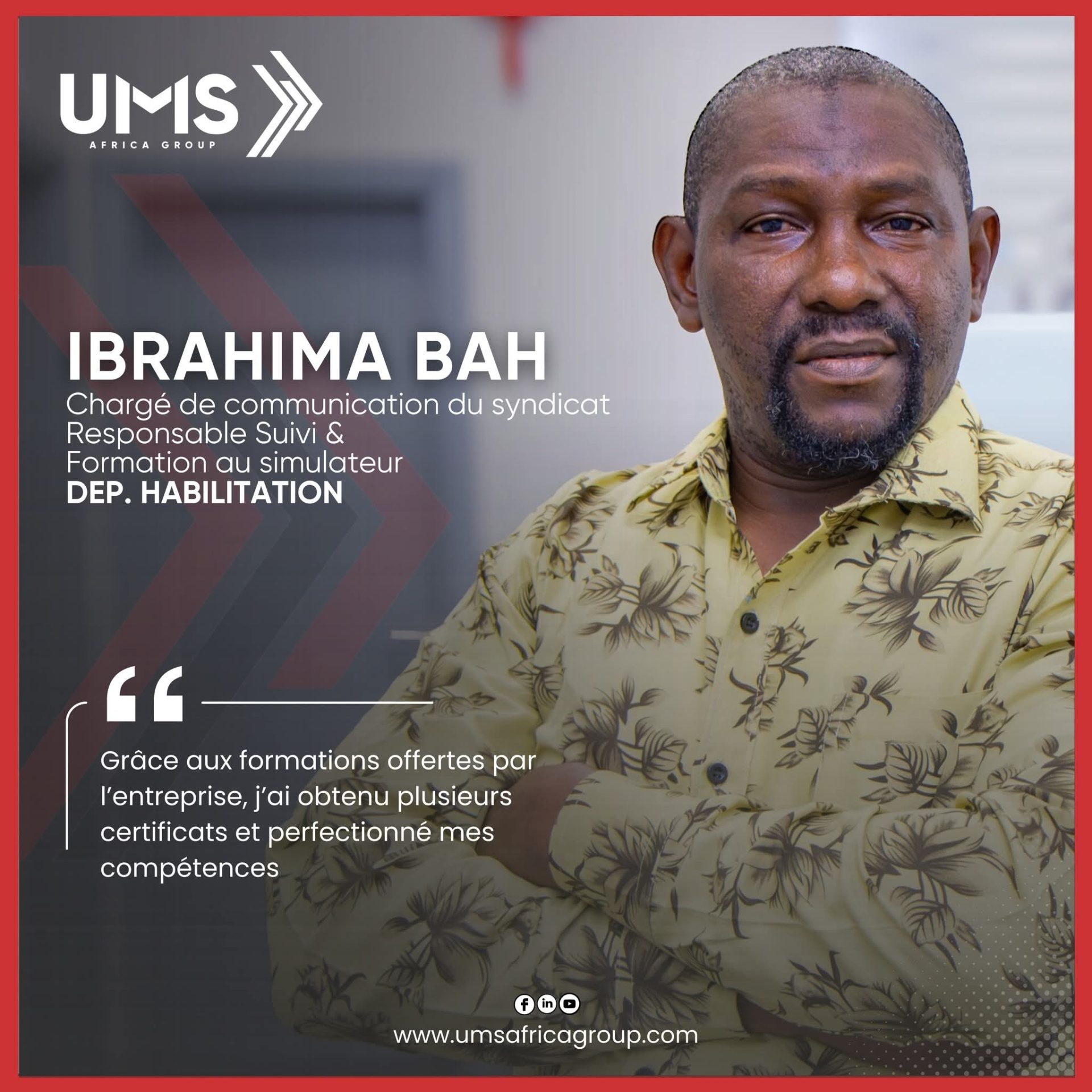 Depuis 2016, Ibrahima Bah fait partie du personnel du Groupe United Mining Supply (UMS). Aujourd’hui, il occupe les fonctions de Chargé de communication du Syndicat et de Responsable Suivi et Formation au simulateur au sein du département Habilitation.