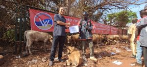 En recevant sa part de taureau, Djibril Kalissa du village Batafon remercie la SMB pour son élan de solidarité et sa constance dans la distribution gratuite des bœufs aux communautés en cette période de pénitence et de communion.