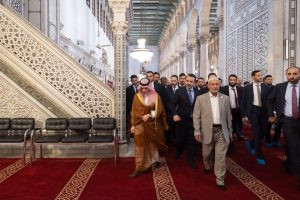 Damas, Syrie – Dans le cadre de sa visite officielle en République arabe syrienne, Son Altesse le Prince Faisal bin Farhan, Ministre des Affaires étrangères du Royaume d’Arabie saoudite, s’est rendu ce jour à la mosquée des Omeyyades, haut lieu historique et religieux de la capitale syrienne.
