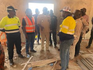 La délégation s’est ensuite rendue sur le chantier de la nouvelle base-vie en construction. Ce projet structurant a particulièrement retenu l’attention du Gouverneur, qui a salué le choix d’un modèle de construction durable, innovant et respectueux des normes en vigueur, se démarquant des pratiques courantes observées dans le secteur. Il a félicité l’entreprise pour la qualité des infrastructures et pour sa vision axée sur la modernité et la durabilité.